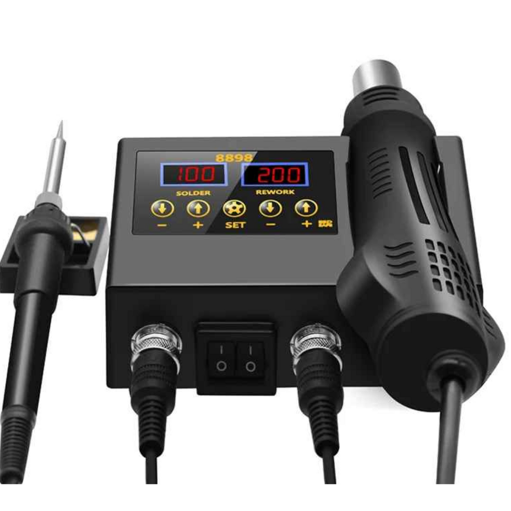 :: Estação de solda de retrabalho 2 em 1 de aquecedor de ar quente e ferro de solda.