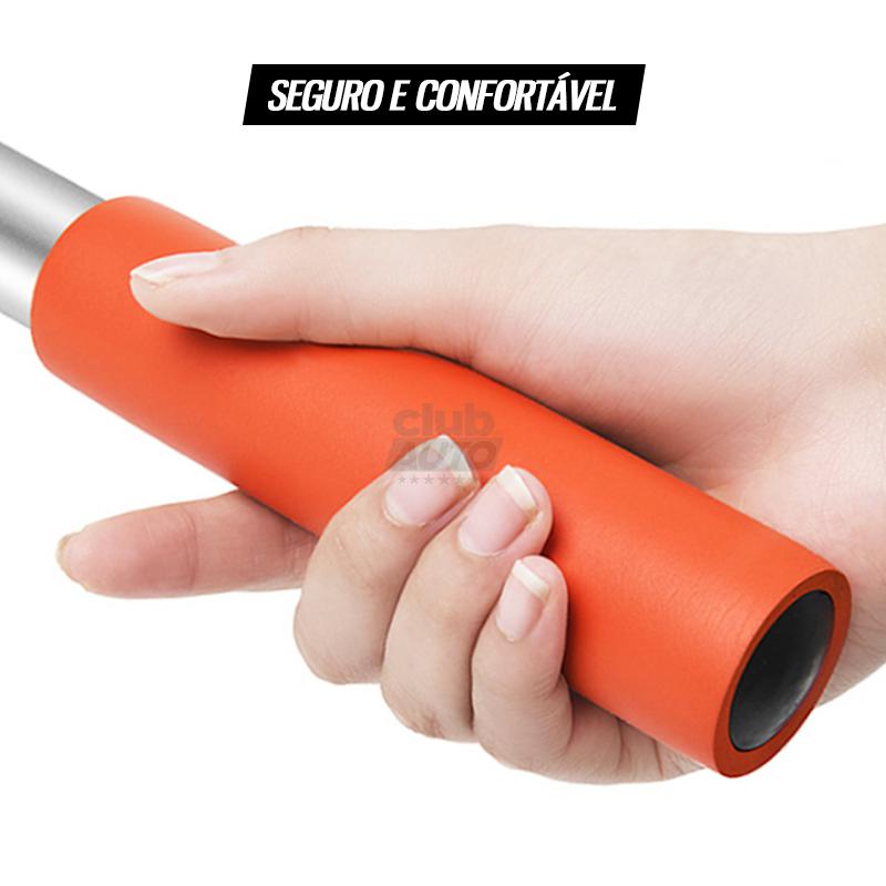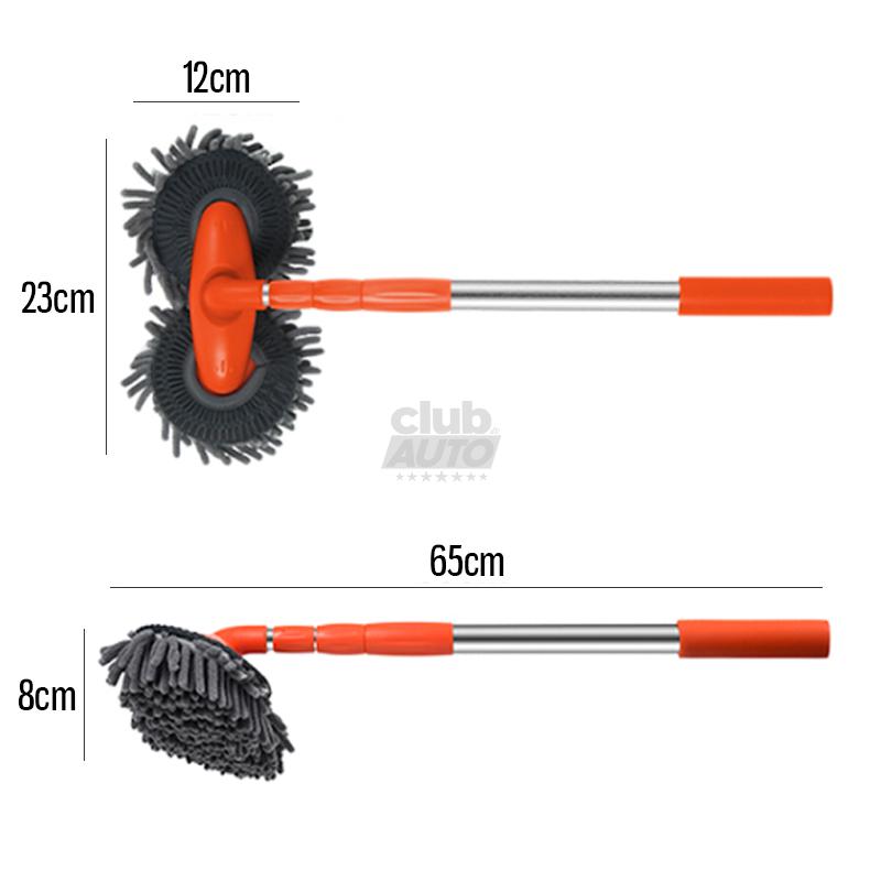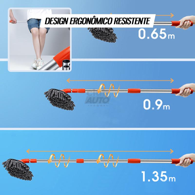 O cabo telescópico retrátil de 3 seções é super resistente e pode ser ajustado para que o esfregão (como um todo) tenha de 65cm até 135cm para um alcance fácil das áreas mais difíceis do carro.