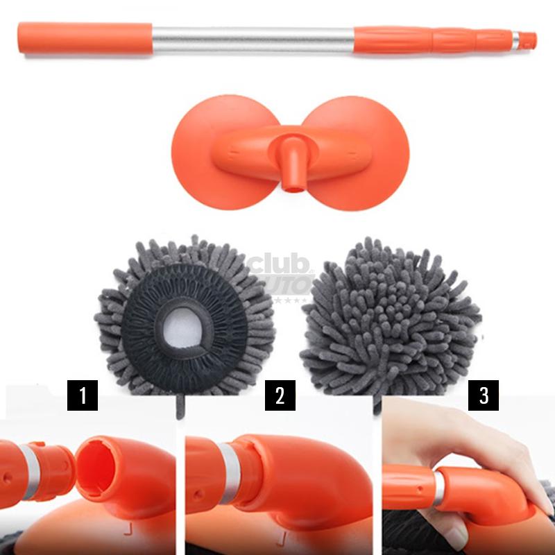 É a qual proporciona alcance completo e limpeza eficaz, onde consegue unir limpadores de eixos duplos giratórios com molas flexíveis, e tecido ultra macio de microfibra automotiva nobre em um único item, tornando uniforme e abrangente, com design ergonômico e alumínio resistente de pegada leve e confortável.